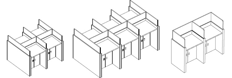 場,結合教室空間布局,設計了雙人位、四人對座位、六人對座位多種款式相結合的智能升降屏