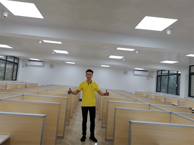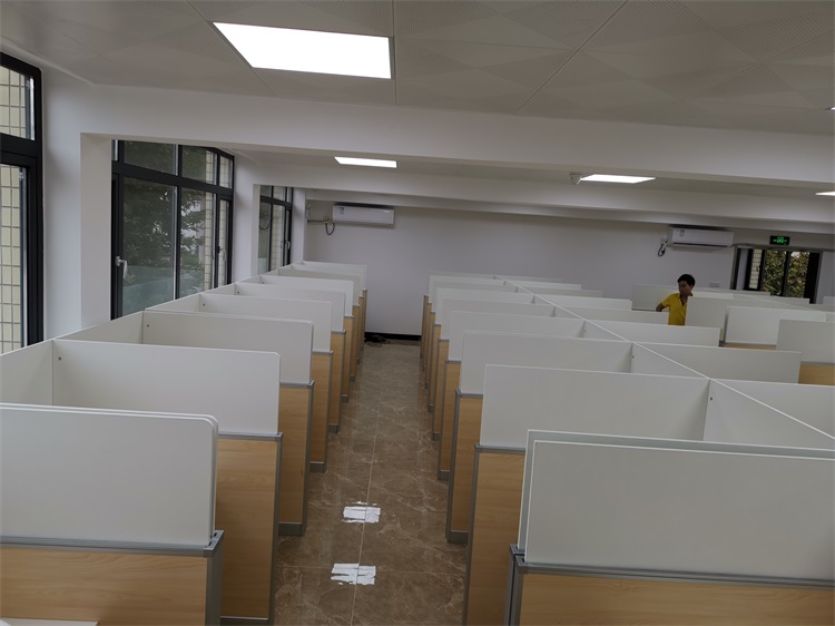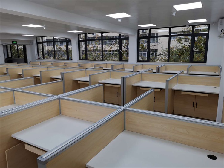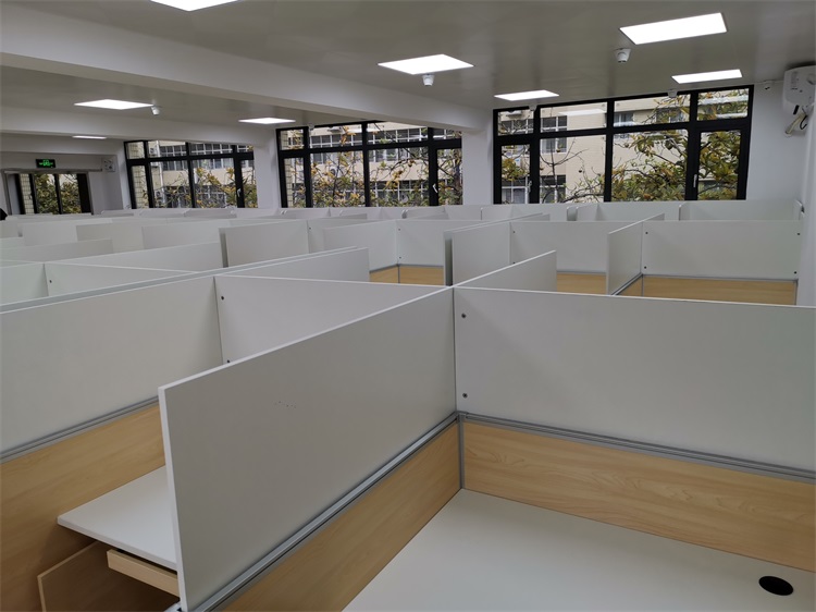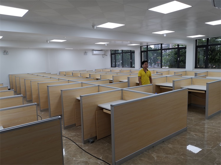 風桌,最大程度的充分利用教室空間,每個座位都有可升降的屏風,屏風升起后可有效