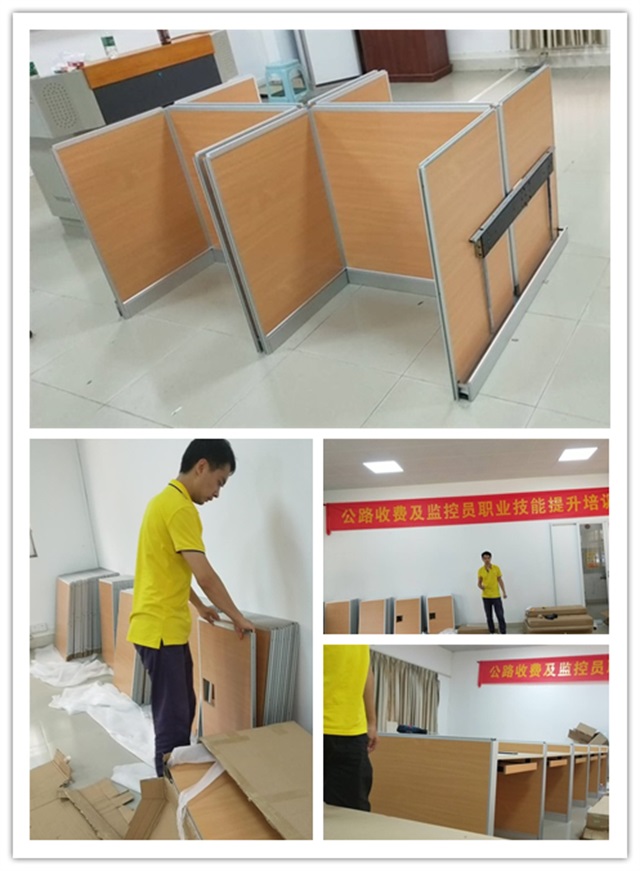 根據廣東交通運輸高級技工學校升降屏風多媒體教室使用需求,本次語音聽說測試考場,結合教室空間布局,設計了四人對位、六人對座位相結合的智能升降屏風桌,最大程度的充分利用教室空間,每個座位都有可升降的屏風,屏風升起后可有效的隔斷相鄰人的正常視線,防噪音效果,可達到互不干擾的作用;不需要屏風時,屏風降下。和普通的教室無異,滿足一教室多用的需求。