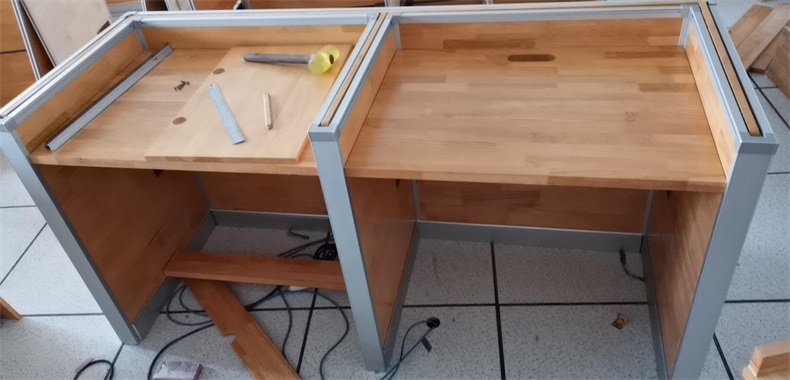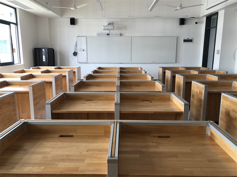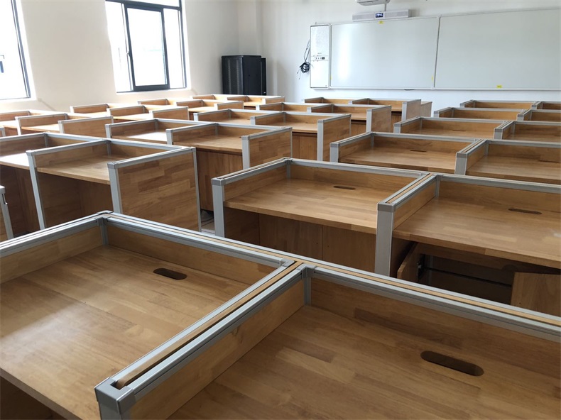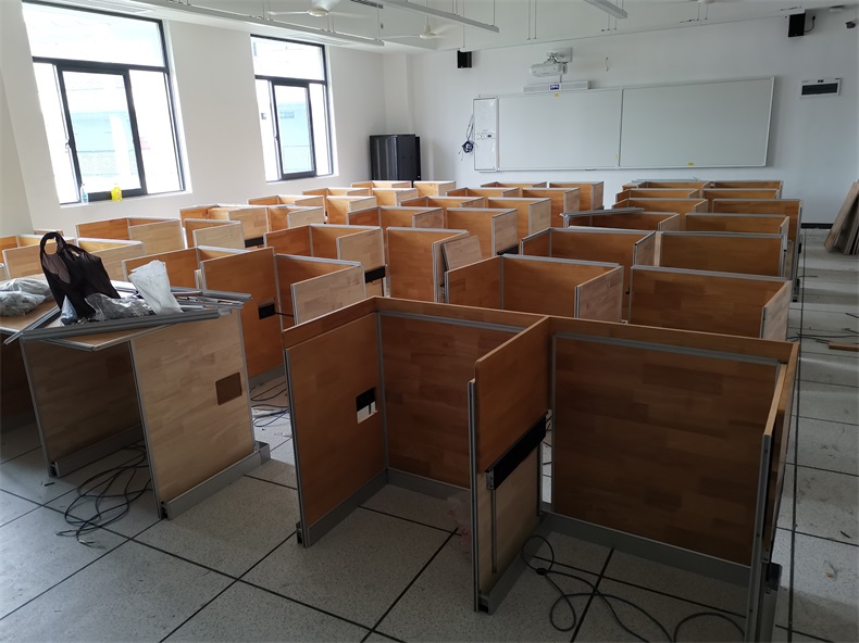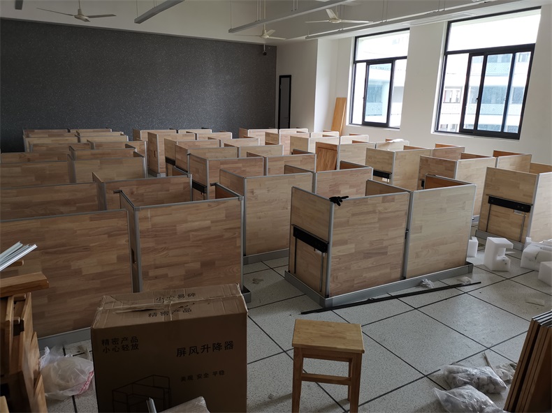 項目地點: 浙江之江中學 項目時間: 2020年8月 項目背景: 面對國家招生考試制度改革下,普通考場不能滿足需求,臨時增加建造多個考試專用考場,在時間和資金方面都不現實。所以需要一種屏風擋板可以升降的電腦桌,來解決標準化考場與計算機語音教室的切換使用,實現一個教室多用途的解決方案。 主要功能: 根據浙江之江中學對教室使用需求,在產品設計方面,電腦桌的左、右、前三面帶升降屏風擋板,用于隔斷相鄰考生視線。當屏風升起時,可以用作教室語音標準化考試使用,當屏風降下時,可以用于學生上課使用。實現了一室多用、考學合一。 |