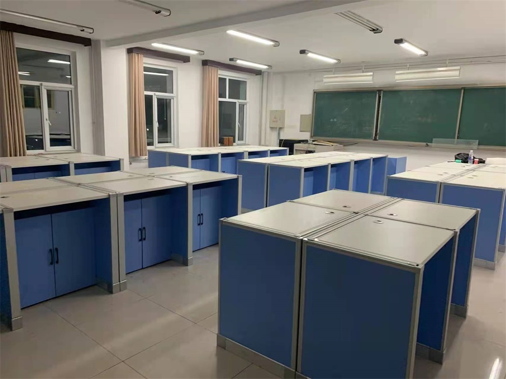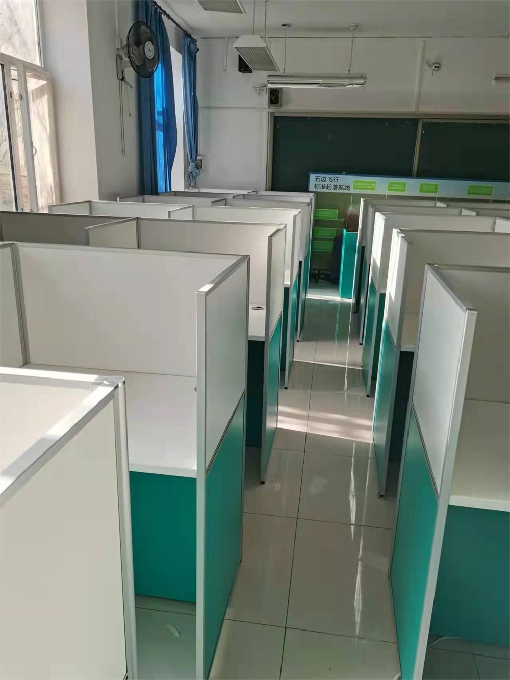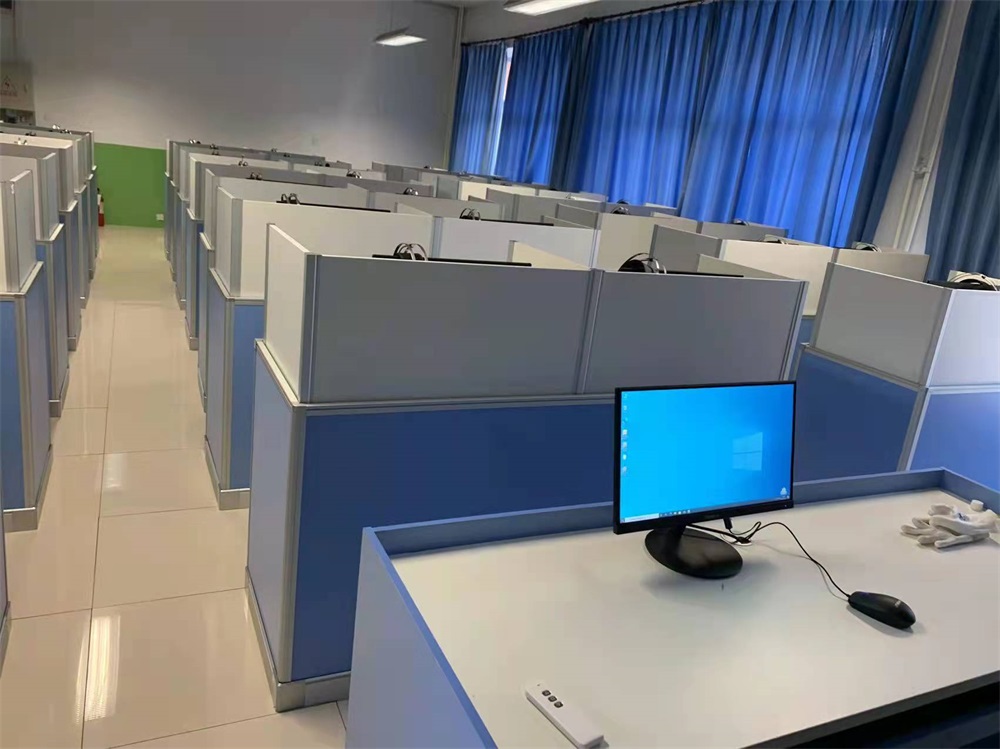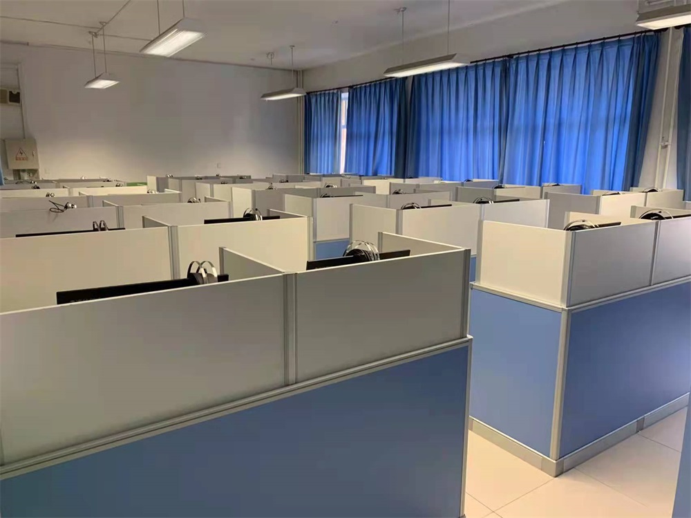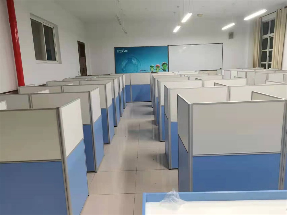 根據北京延慶5所中學對升降屏風教室的使用需求,方方智能對該教室設計了一套可以升降的智能升降屏風桌,每個座位都有可升降的屏風,考試時屏風升起后可有效的隔斷相鄰人的正常視線,防噪音效果,可達到互不干擾的作用,當屏風降下時,可以用于學生日常上課使用。實現了一室多用、考學合一。