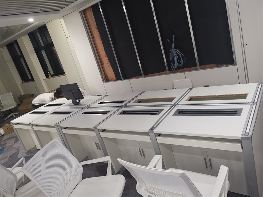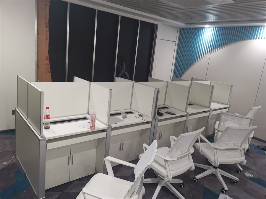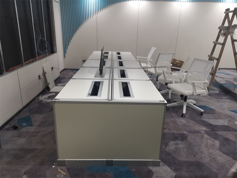 根據廈門大學對信息宣傳室的使用需求,方方智能對該學校設計了一套可以升降的10人對座的智能升降屏風桌,并配有液晶屏升降器,每個座位都有可升降的屏風,考試時屏風升起后可有效的根據廈門大學對信息宣傳室的使用需求,方方智能為該學校設計使用升降屏風與液晶屏升降器相結合的電腦桌。升降屏風桌極大地解決了傳統桌子功能單一的缺點。每個座位的擋板屏風和液晶屏,可根據使用需求可升起或藏至桌體。升降起時,形成獨立小空間,隔斷相鄰人的正常視線,防噪音效果,可達到互不干擾的作用;下降時,保持桌子表面的平整和美觀,實現真正意義上的多變空間一室多用。