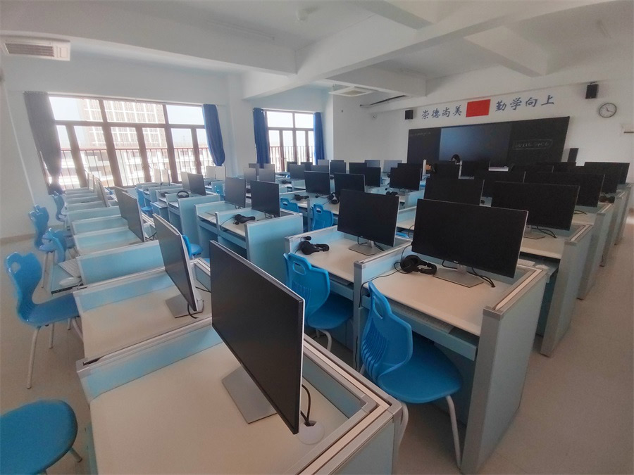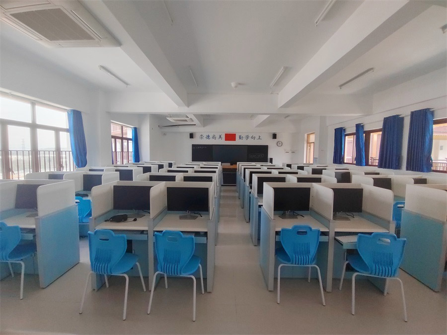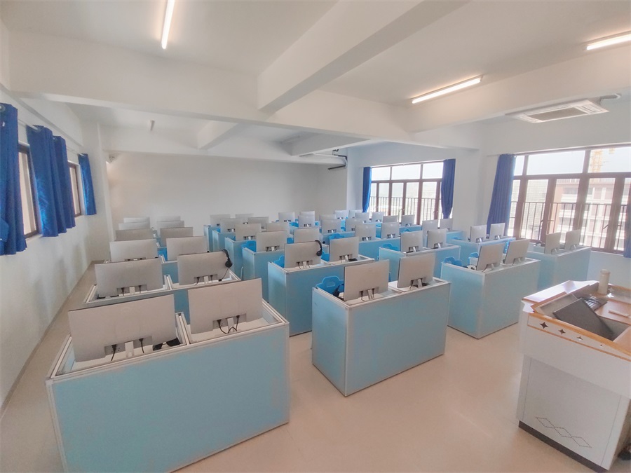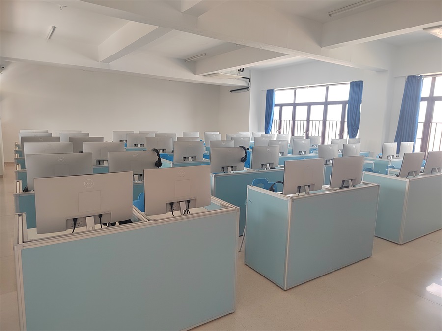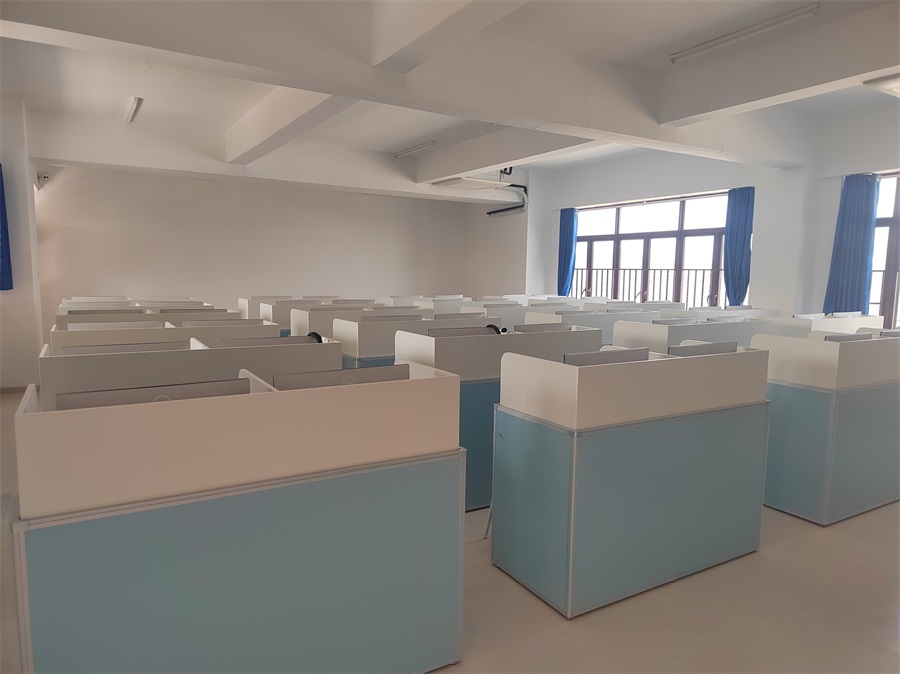 根據(jù)廣州華萬(wàn)學(xué)校對(duì)升降屏風(fēng)語(yǔ)音教室的使用需求,方方智能對(duì)該語(yǔ)音室設(shè)計(jì)了一套可以升降的智能升降屏風(fēng)桌,每個(gè)座位都有可升降的屏風(fēng),考試時(shí)屏風(fēng)升起后可有效的隔斷相鄰人的正常視線,防噪音效果,可達(dá)到互不干擾的作用,當(dāng)屏風(fēng)降下時(shí),可以用于學(xué)生日常上課使用。實(shí)現(xiàn)了一室多用、考學(xué)合一。