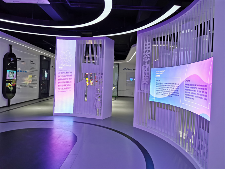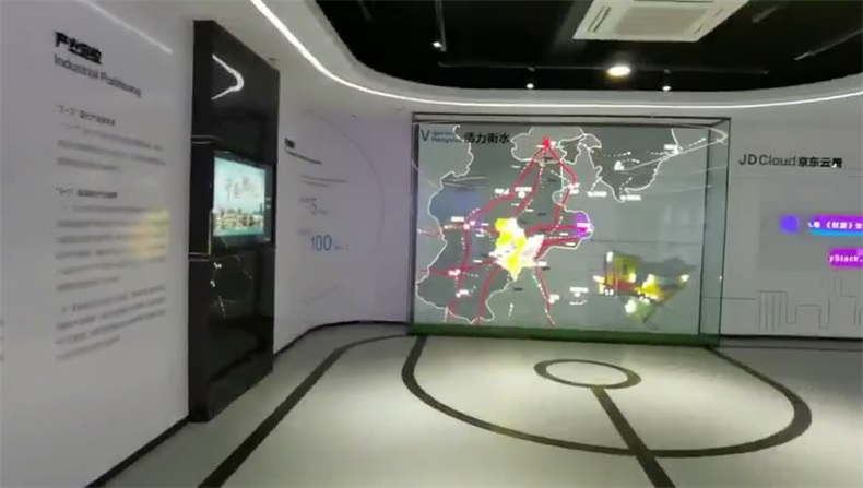項(xiàng)目背景: 京東集團(tuán)與衡水市戰(zhàn)略合作,簽訂互聯(lián)網(wǎng)+新經(jīng)濟(jì)發(fā)展合作項(xiàng)目,根據(jù)衡水市經(jīng)濟(jì)產(chǎn)業(yè)規(guī)劃,集中打造產(chǎn)業(yè)示范展示門戶,將新經(jīng)濟(jì)展廳建設(shè)成為衡水市新經(jīng)濟(jì)產(chǎn)業(yè)的新名片。 方方智能科技作為項(xiàng)目整體解決服務(wù)商,從創(chuàng)意策劃、展廳設(shè)計(jì)、裝修施工、數(shù)字內(nèi)容制作到系統(tǒng)裝配、設(shè)備安裝,一體化實(shí)施,為京東云衡水新經(jīng)濟(jì)體驗(yàn)中心打造出功能復(fù)合的展示體驗(yàn)空間,作為衡水與京東合作成果展示空間;打造線上線下一體化、可持續(xù)更新的衡水新經(jīng)濟(jì)體驗(yàn)空間;以京東云落地為契機(jī),打造持續(xù)性的產(chǎn)業(yè)帶動(dòng)效應(yīng),塑造衡水?dāng)?shù)字經(jīng)濟(jì)發(fā)展地標(biāo)! |