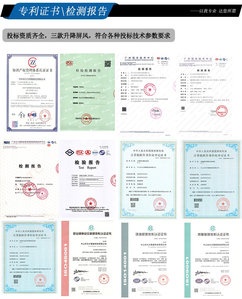10、*升降屏風(fēng)生產(chǎn)廠家通過質(zhì)量管理體系認(rèn)證、環(huán)境管理體系認(rèn)證、職業(yè)健康安全管理體系認(rèn)證、知識(shí)產(chǎn)權(quán)管理體系認(rèn)證(貫標(biāo))證書覆蓋范圍必須包含升降屏風(fēng)。