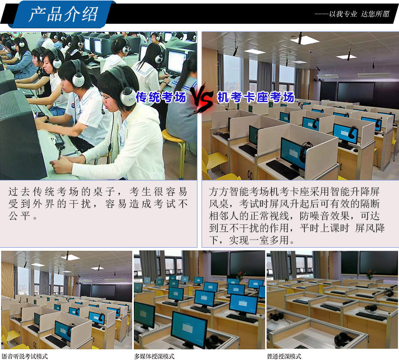 1、*升降屏風(fēng)基礎(chǔ)高度880mm、桌面高750mm,屏風(fēng)考試時(shí)升起高度1230mm。形成獨(dú)立空間,起到良好的隔音隔斷效果,確保能最大程度降低相鄰學(xué)生之間考試時(shí)的互相干擾和影響.