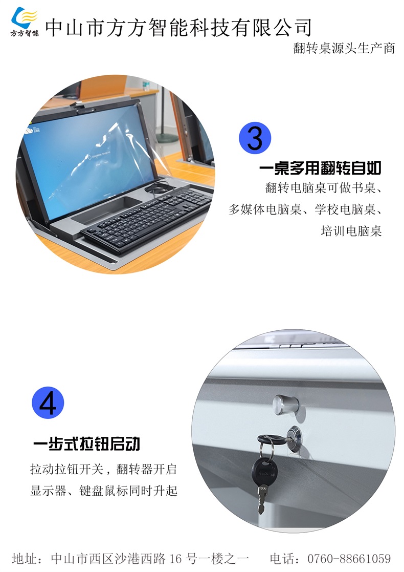 ,翻轉器與電腦桌配套使用,拉動開關按鈕液晶顯示屏會自